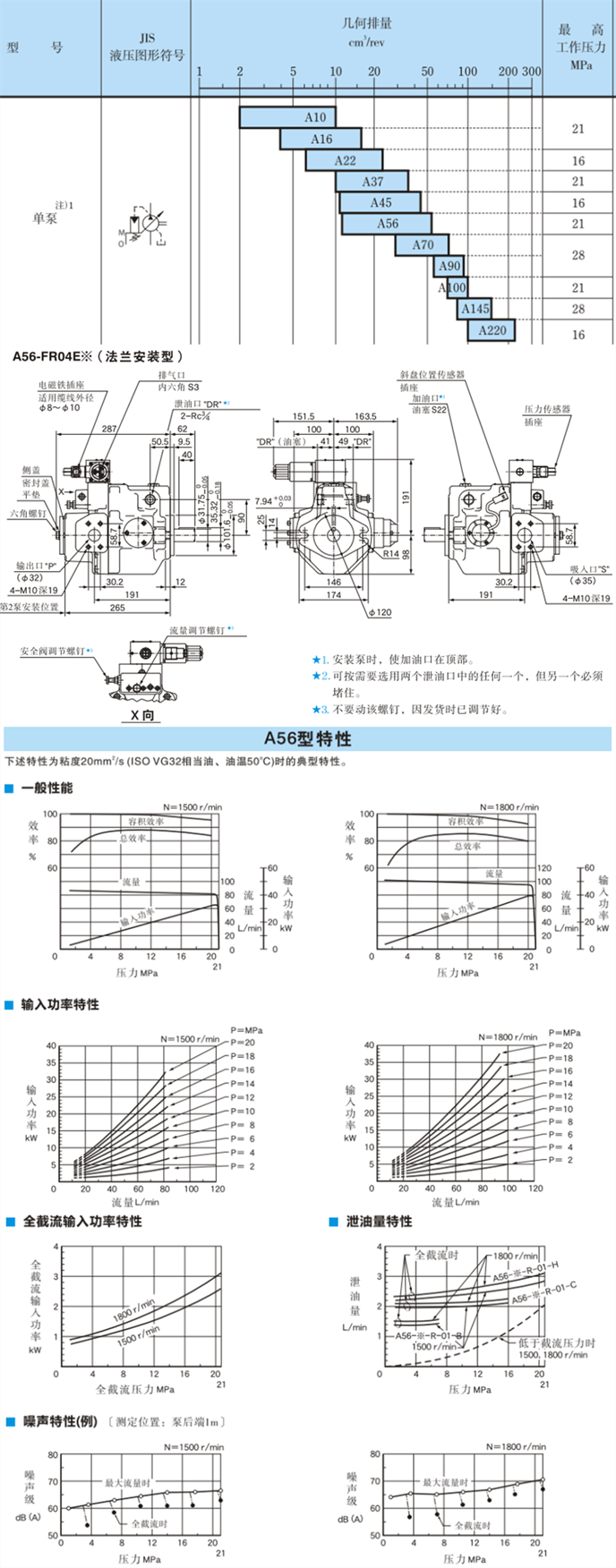 6、排量多樣,從10cm3/rev到219cm3/rev,可適用于各大小型液壓油站。