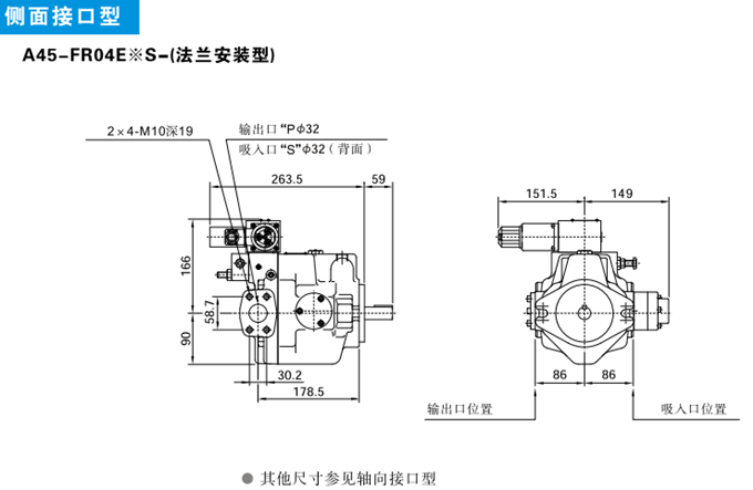 A45-FR04E※S-(法蘭安裝型)油研柱塞泵安裝尺寸: