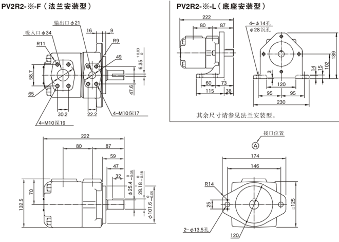 PV2R2系列油研葉片泵安裝尺寸: